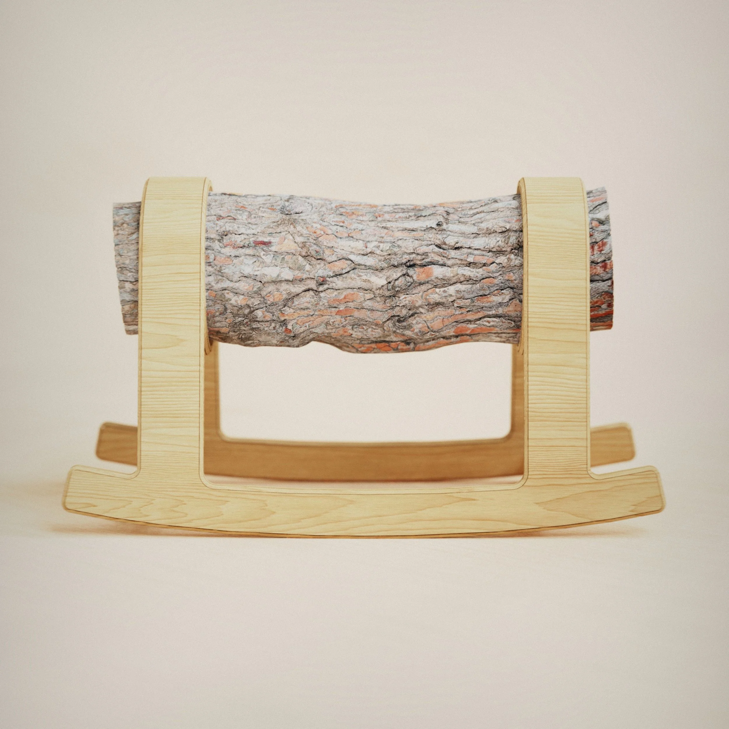 I reimagined and designed this fun idea for a rocking horse. The Rocking Log is a very literal and humorous approach to getting kids more connected with nature in its purest form. Similar to climbing a tree, this familiar tactile experience will illicit all of the senses - whether it's the textural feel of the bark, the sound of the creaking wood, the scent of the arbor, or the visual juxtaposition of a modern form contrasted with an unforgiving gnarled stump. The Rocking Log is bound to leave a lasting impression and deliver an experience unlike any other rocking horse.